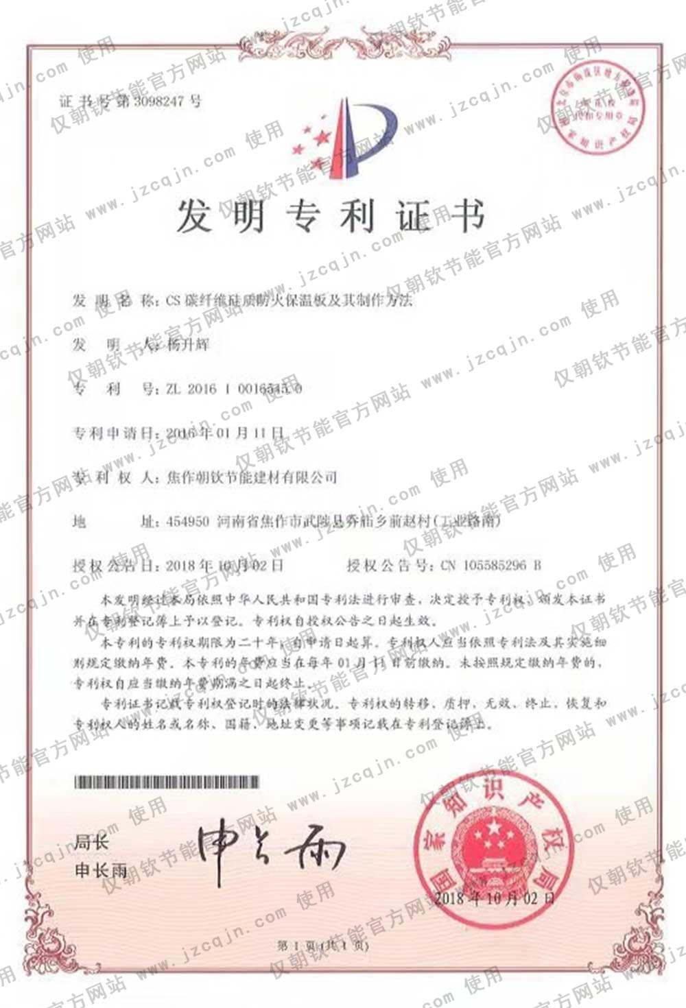 專利|CS碳纖維硅質防火保溫板及其制作方法